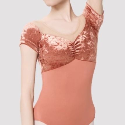 短い袖が二の腕をさりげなくカバーし、レッスンや発表会でも自信を持って着用いただけます。