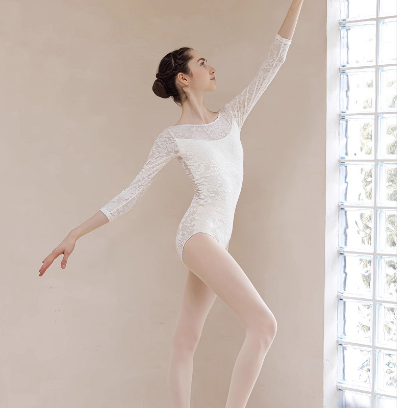 繊細な花柄レース素材を全体に使用した優雅なバレエレオタードです。