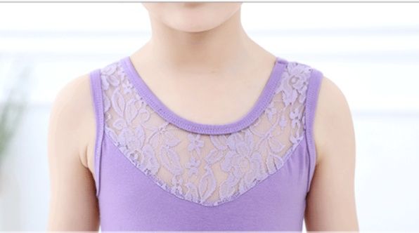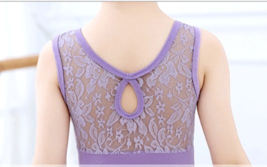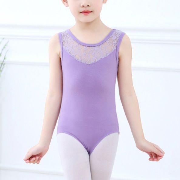 胸元に繊細なレース素材を施した上品なバレエレオタードです。