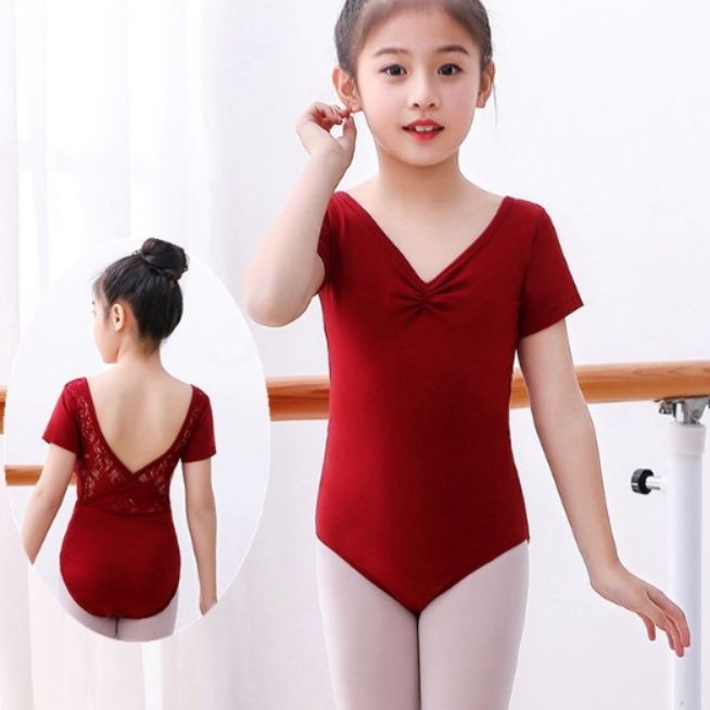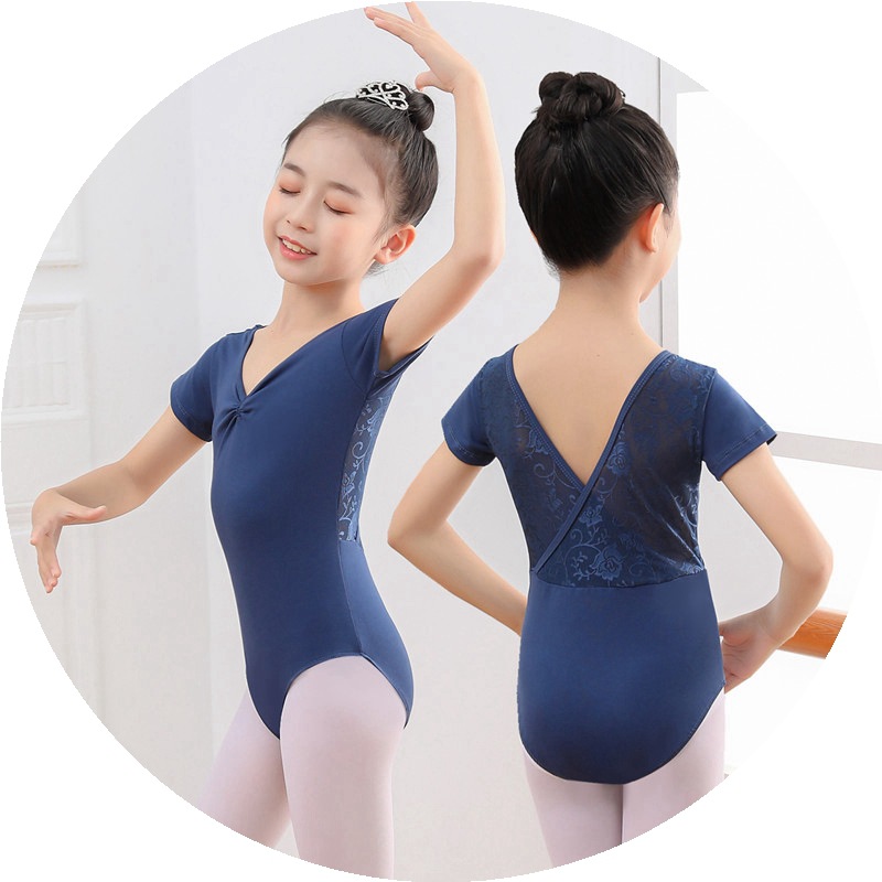 優雅なブイネックデザインが特徴の半袖バレエレオタードです。