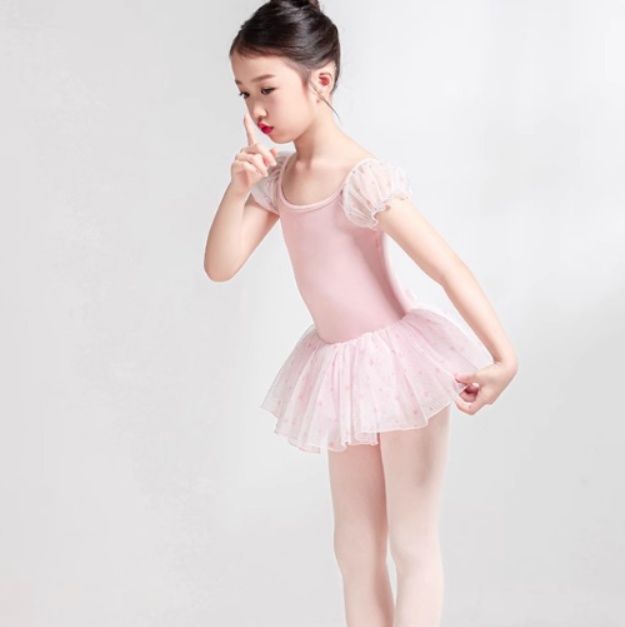 ボリュームのあるチュチュスカートが一体となっており、発表会やレッスンで華やかに踊れます。