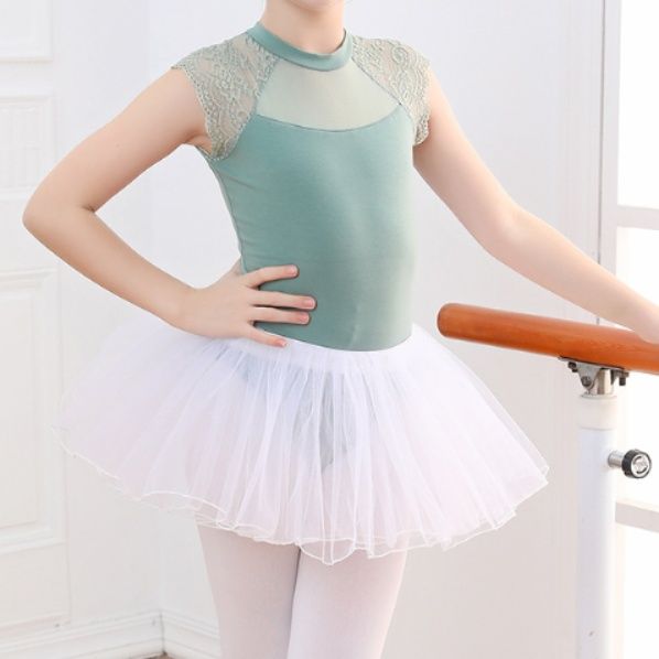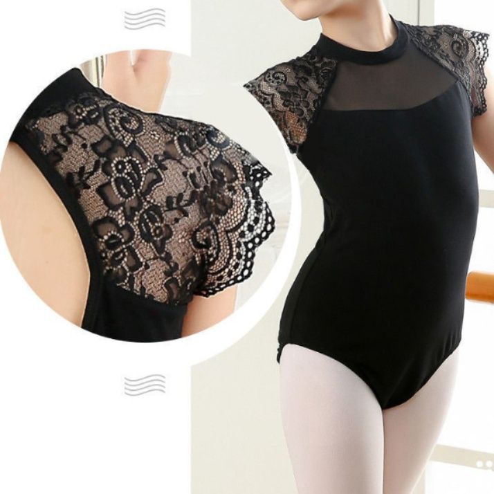 繊細なレース袖とシースルーのネックラインが優雅さを演出するバレエレオタードです。