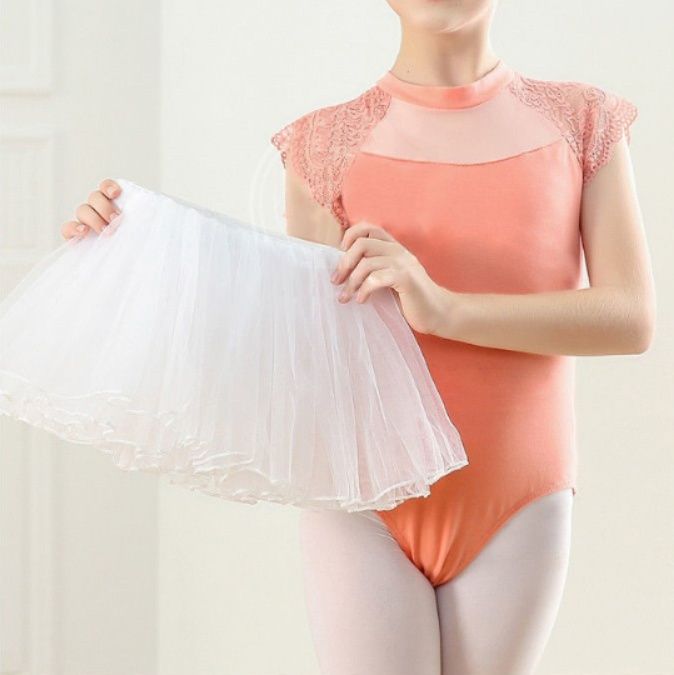 スカート付きのデザインで、ふんわりとしたチュールスカートが可憐な印象を与えます。