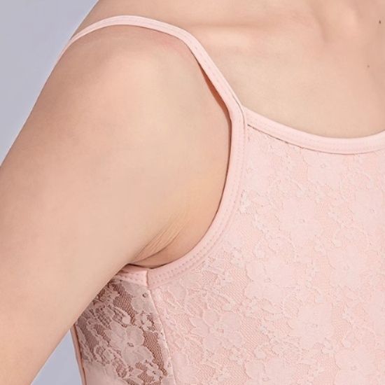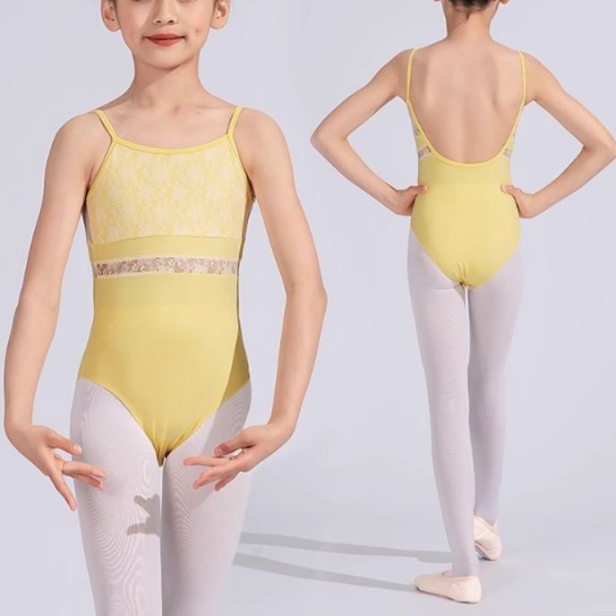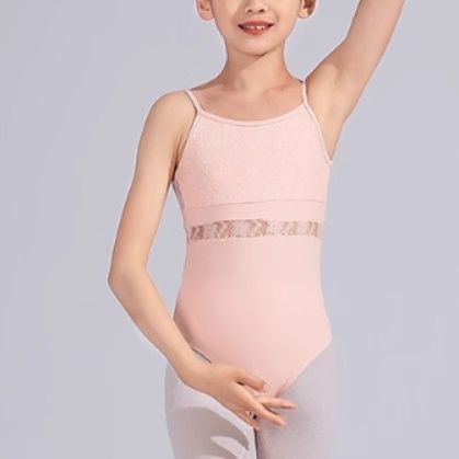 胸元に繊細なレース素材を施したキャミソールタイプのバレエレオタードです。